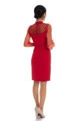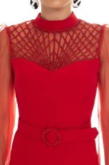 D-913 KB Tül Kol Kemerli Kısa Krep Elbise