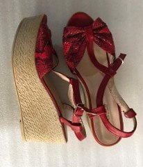 Polaris Dolgu Topuk Kırmızı Sandalet
